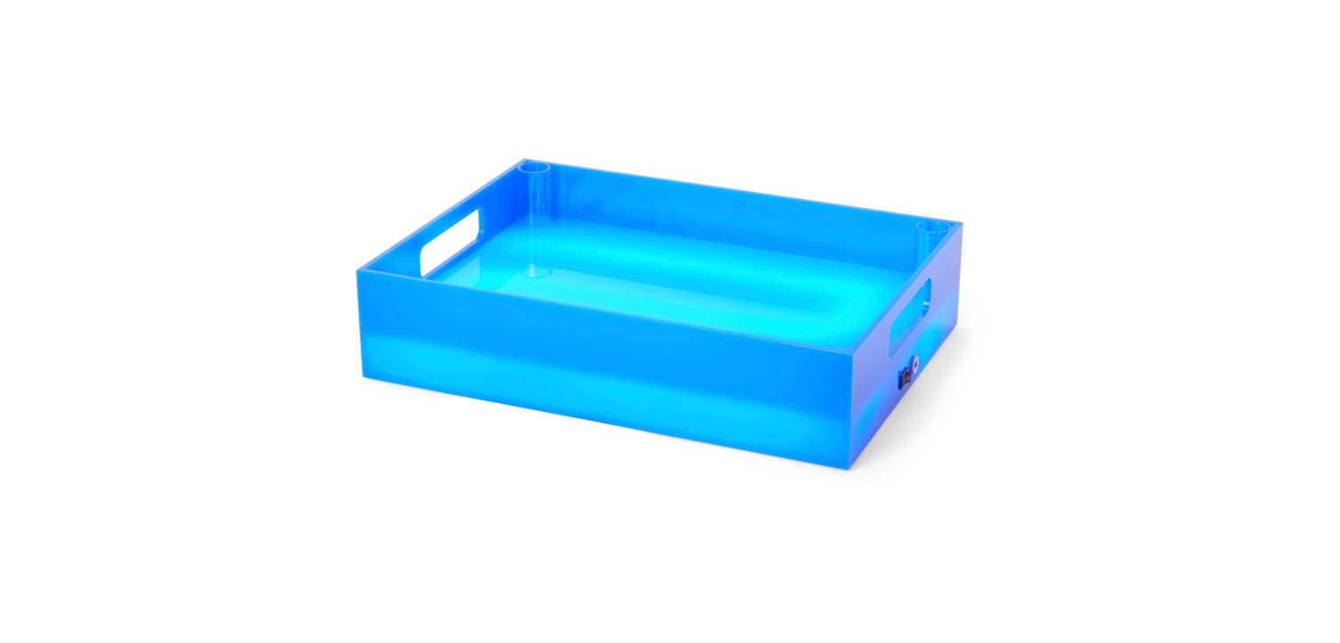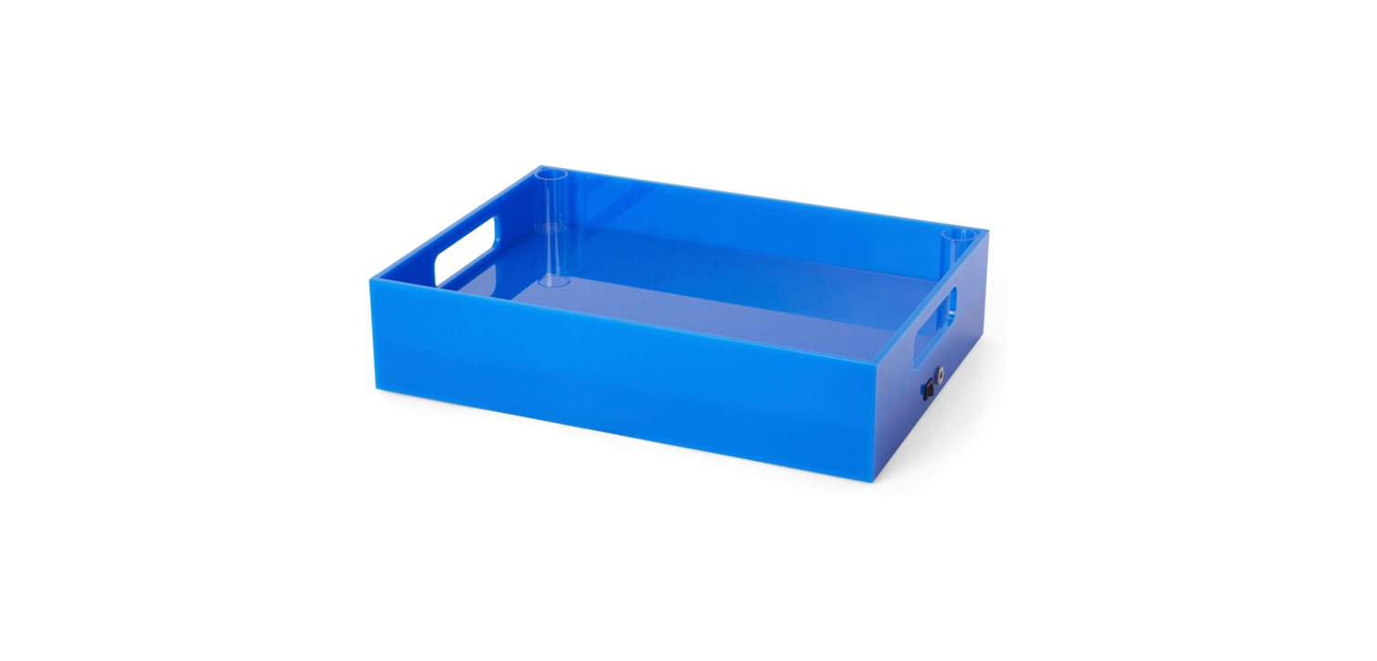 A unique LED drink tray designed and developed by us after many requests from our customers. Think of a classic bottle crate, but upgraded to a premium level. It’s made from durable polycarbonate and features an on/off switch on the side for the LED lighting. The tray also includes holders for ice fountains for those who really want to make an entrance.